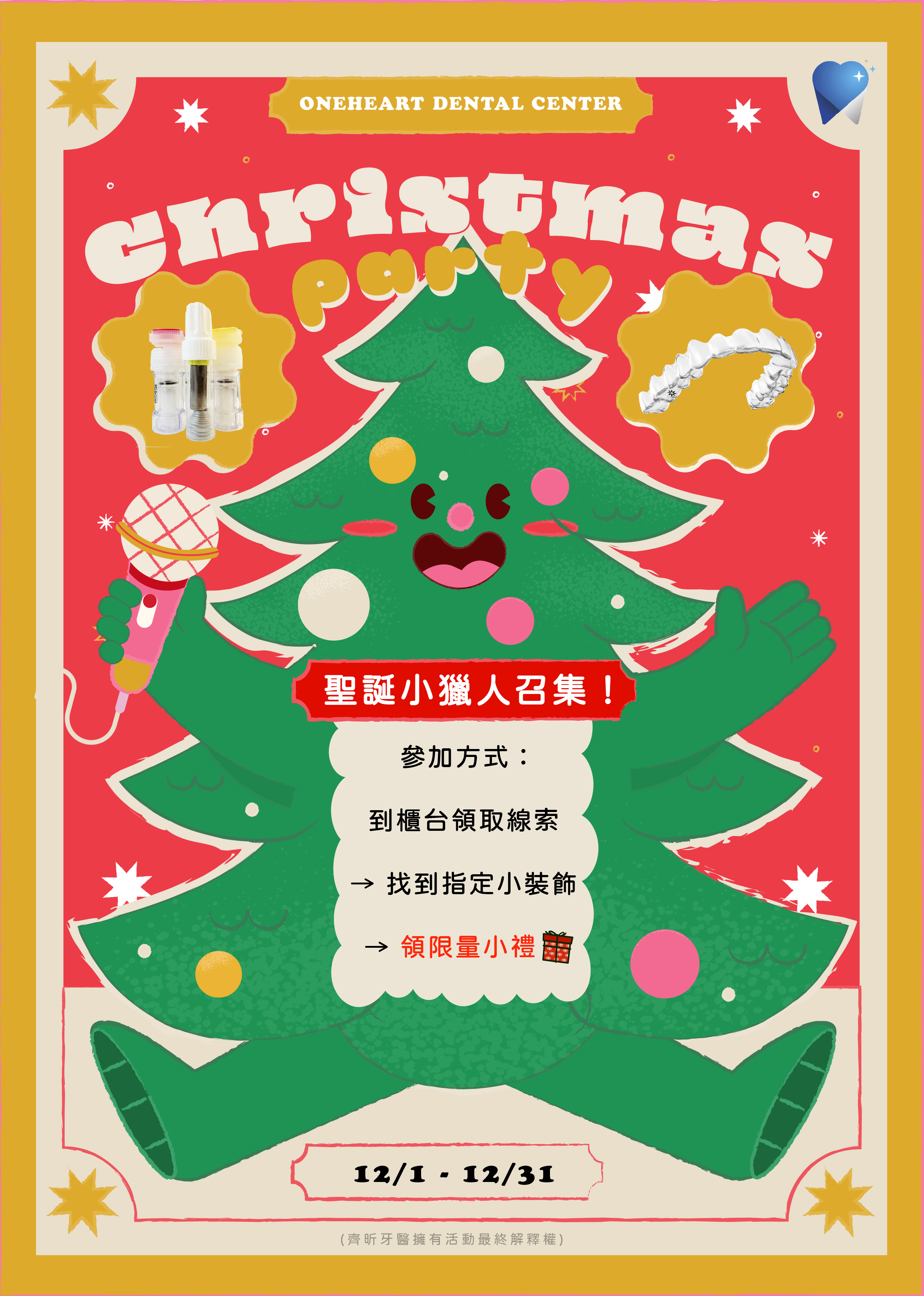 今年聖誕節,聖誕老公公悄悄把「小寶物」藏在我們診所的聖誕樹上,只要你找到指定的小裝飾,就能現場獲得一份 暖心小禮物!cool